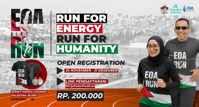 Gerakan solidaritas untuk Palestina kembali digaungkan melalui kegiatan olahraga. Event EOA Virtual Run 2025 resmi dibuka untuk pendaftaran, menghadirkan ajakan bagi masyarakat di seluruh Indonesia